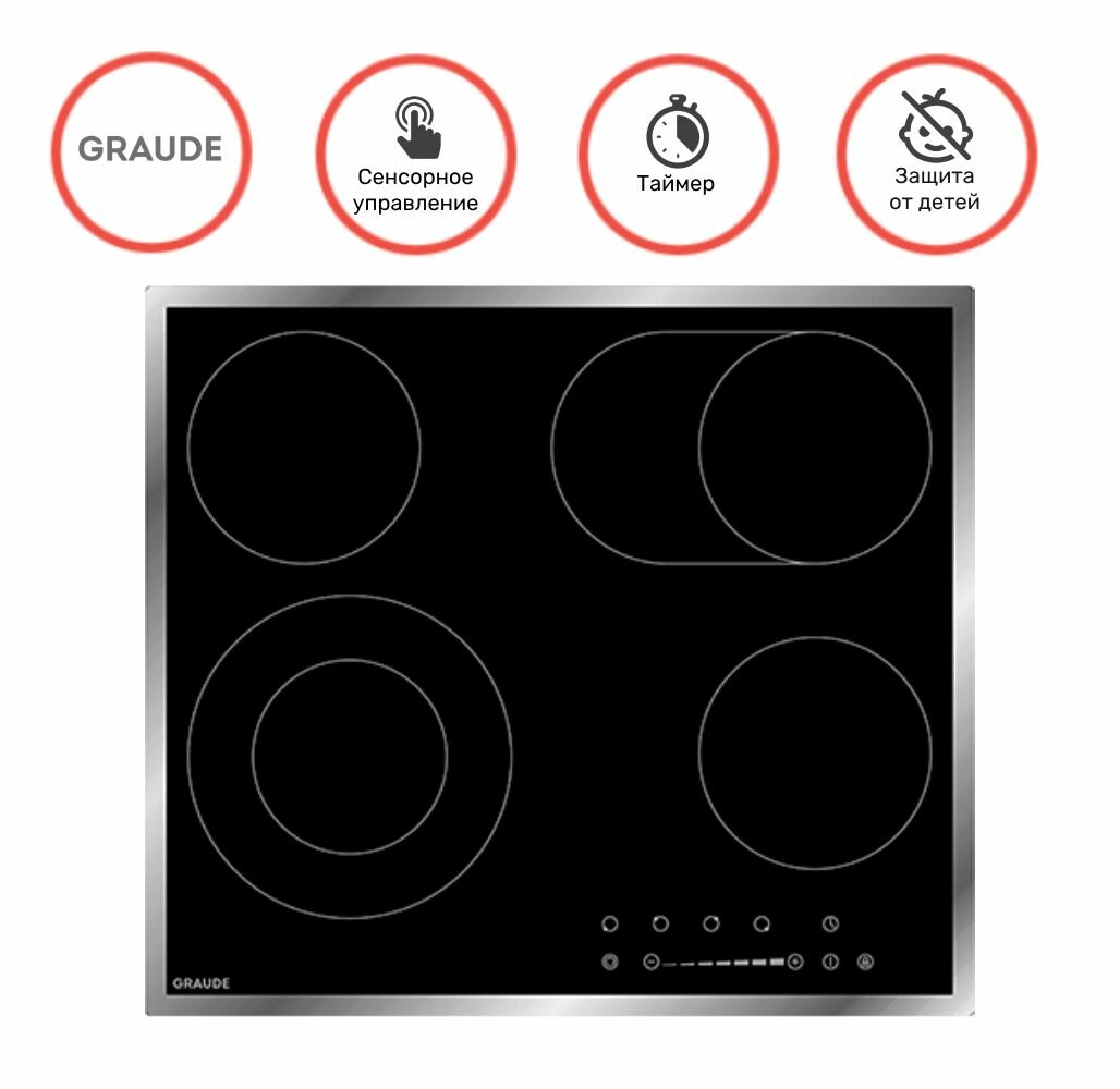Электрическая варочная панель GRAUDE EK 60.2 E, с рамкой, цвет панели черный, цвет рамки серебристый