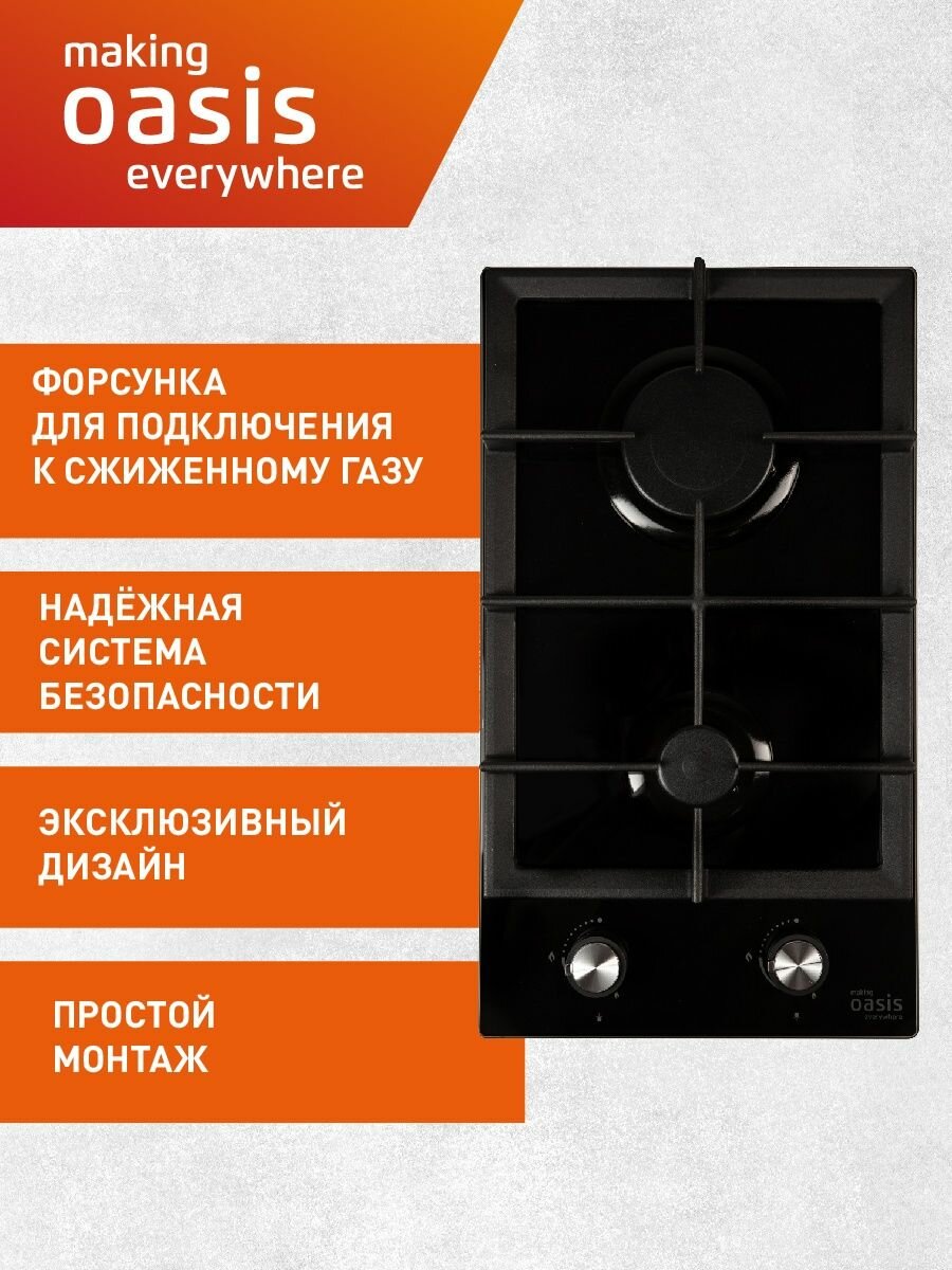 Газовая варочная панель встраиваемая Oasis P-GBD, 2 конфорки, черная