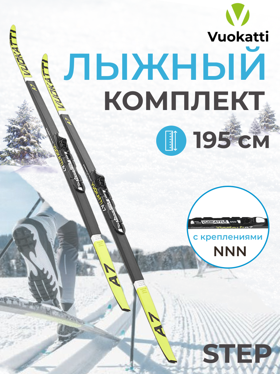 Лыжный комплект VUOKATTI / Беговые лыжи 195 см с креплением NNN Step цвет Black/Yellow
