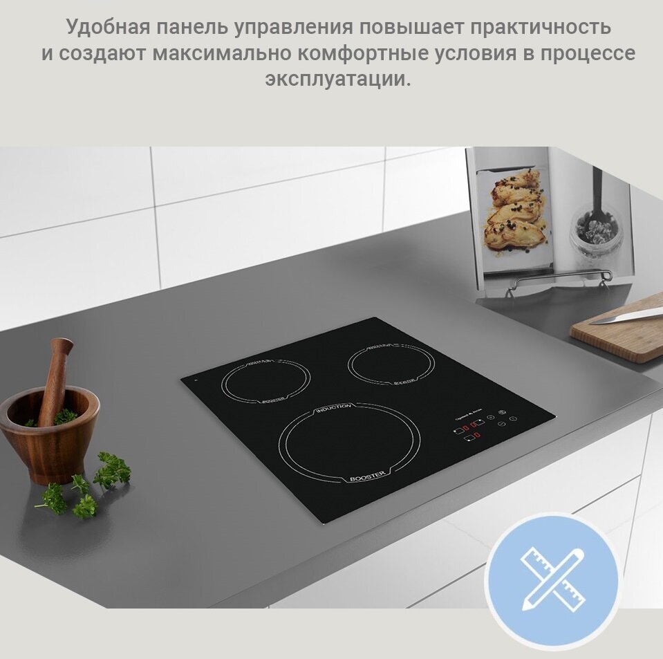 Встраиваемая панель индукционная Zigmund&Shtain CIS 029.45 BX /черн., 3-х комфорочная, стеклокерамика, сенс. упр./Италия
