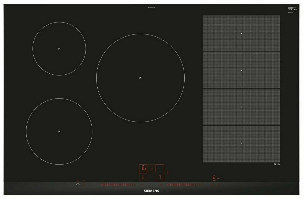 Индукционная варочная панель Siemens EX875LVC1E, с рамкой, цвет панели черный, цвет рамки серебристый интересное: