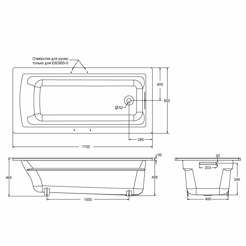 СохранитьВанна чугунная Jacob Delafon Archer, 170 x 80 см, с отверстиями для поручня, ножки в подарок, белая, E6D905-0 интересное: