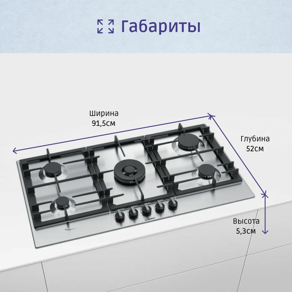 Газовая варочная панель Bosch PCR9A5B90M нержавеющая сталь интересное: