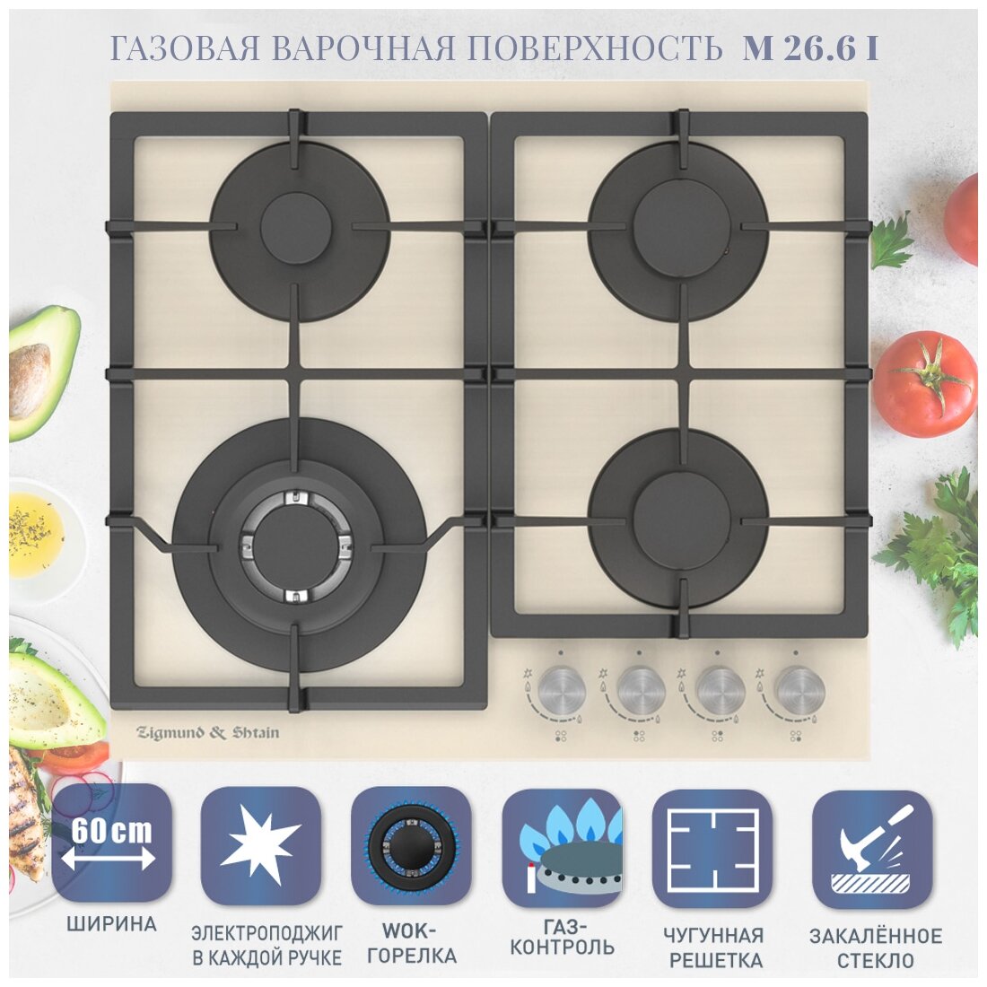 Газовая стеклянная варочная панель Zigmund & Shtain M 26.6 I, бежевый