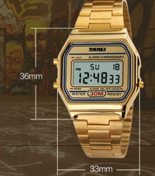 Часы унисекс Skmei водонепроницаемые, с будильником, золотистые