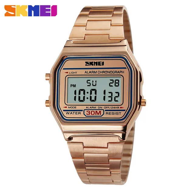 Часы унисекс Skmei водонепроницаемые, с будильником, золотистые