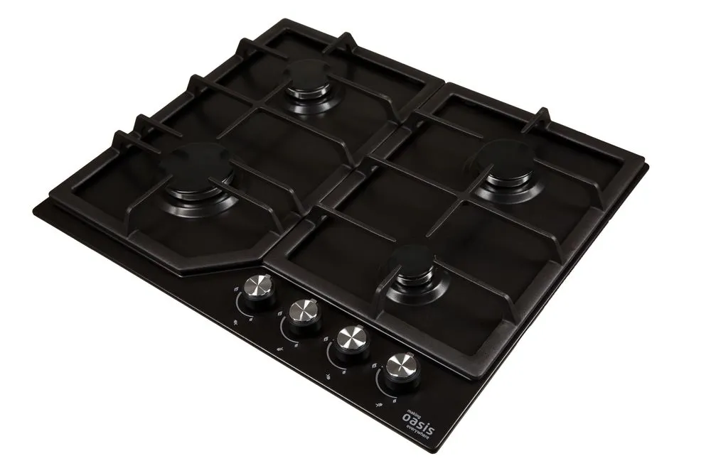 Варочная панель встраиваемая Oasis P-MBR, эмаль, черная, газ-контроль, чугунные решетки, 4 конфорки