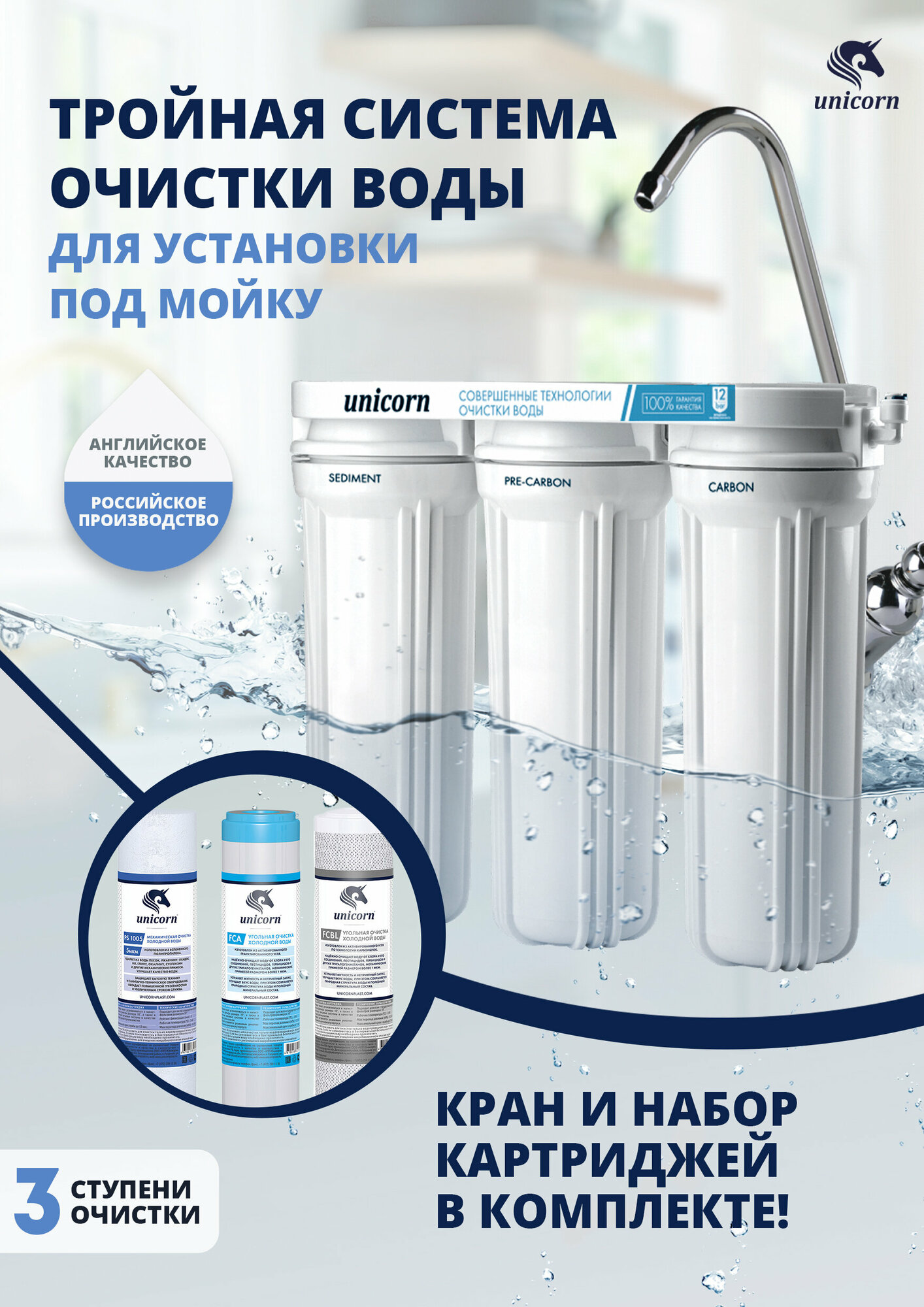 Система очистки воды трёхступенчатая под мойку Unicorn FPS-3