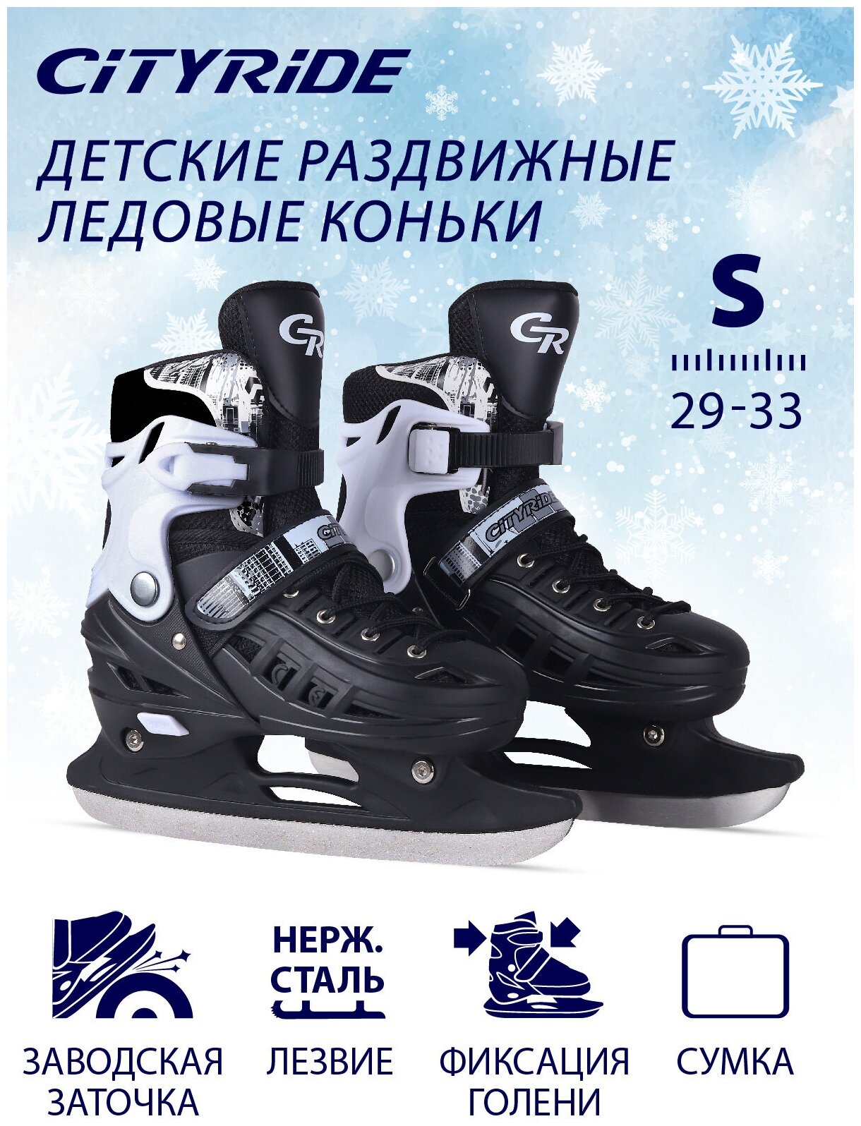 Раздвижные коньки City-Ride пластиковый мысок, лезвие нержавеющая сталь в н/сумке (S(29-33)черный JB