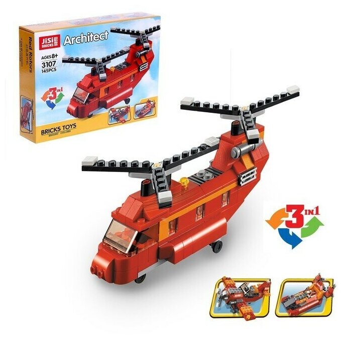JISI BRICKS Конструктор «Пожарный вертолёт», 3 варианта сборки, 145 деталей