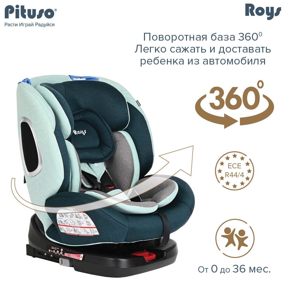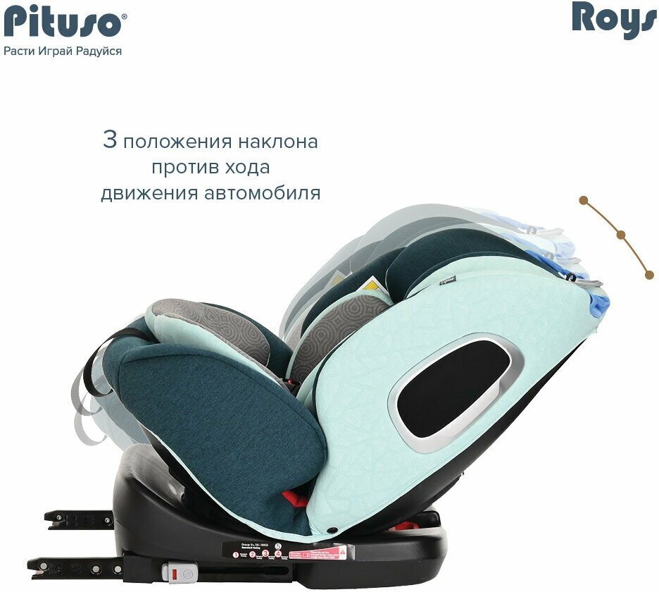 Автокресло для детей 0-36 кг Pituso Roys Emerald Grey/Изумрудно-Серый, 0-12 лет крепление isofix, от 0-12 лет, с рождения