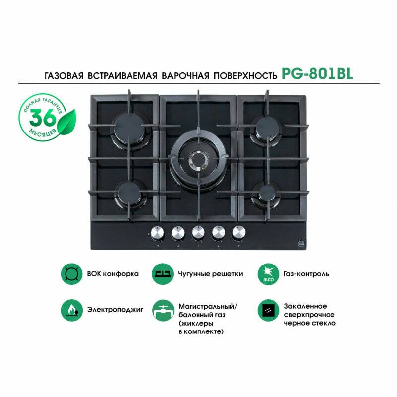 Купить Газовая варочная панель MBS PG-801BL classic, независимая, стекло черное