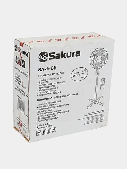 Напольный вентилятор Sakura SA-16BK, черный/серый