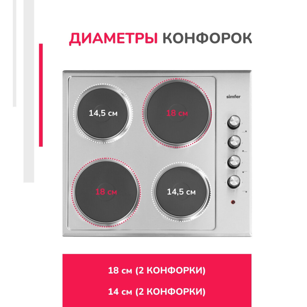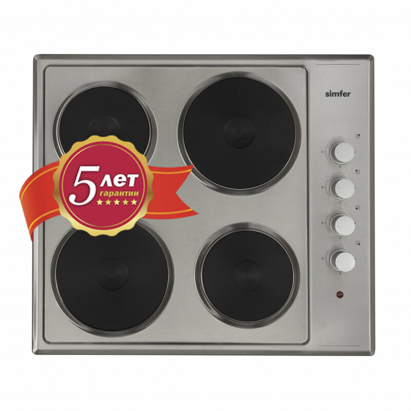 Электрическая варочная панель Simfer H60E04M011 нержавеющая сталь, 4 конфорки, ширина 60 см