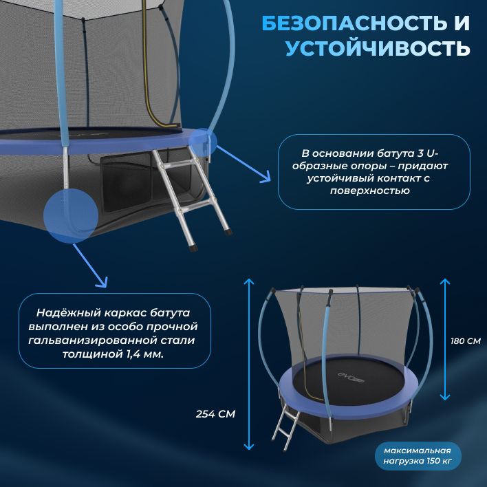 СохранитьБатут EVO Jump Internal 10ft (Blue) с внутренней сеткой и лестницей + нижняя сеть интересное: