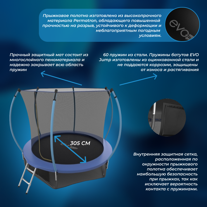 Купить Батут EVO Jump Internal 10ft (Blue) с внутренней сеткой и лестницей + нижняя сеть
