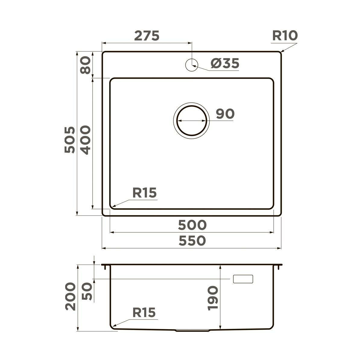 Кухонная мойка OMOIKIRI Amadare 55-IN, нержавеющая сталь, 50.5см х 55см, нержавеющая сталь [49937
