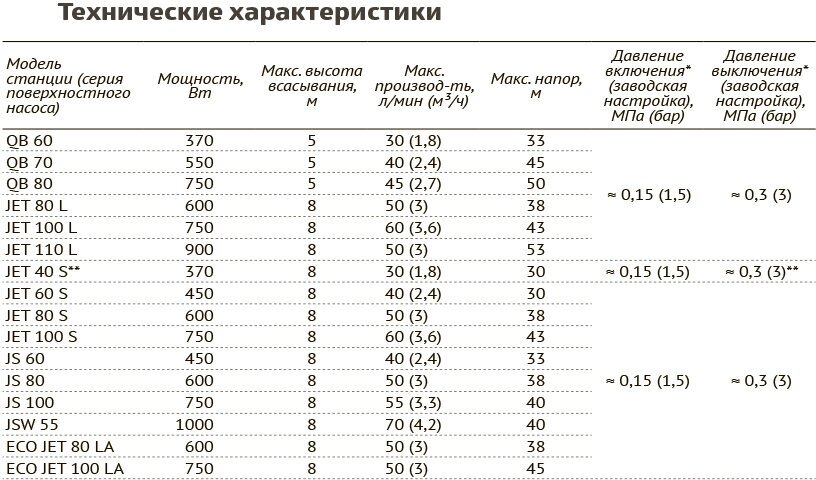 | Тип поверхностного насоса | насосная станция |