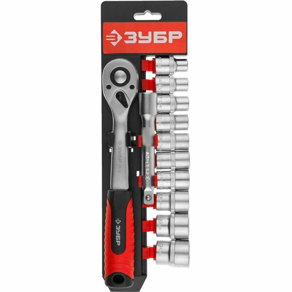 Набор торцевых головок 12 пр, 1/2", 10-24 мм, с трещоткой, Зубр, ТР-12Б, 27647-H12