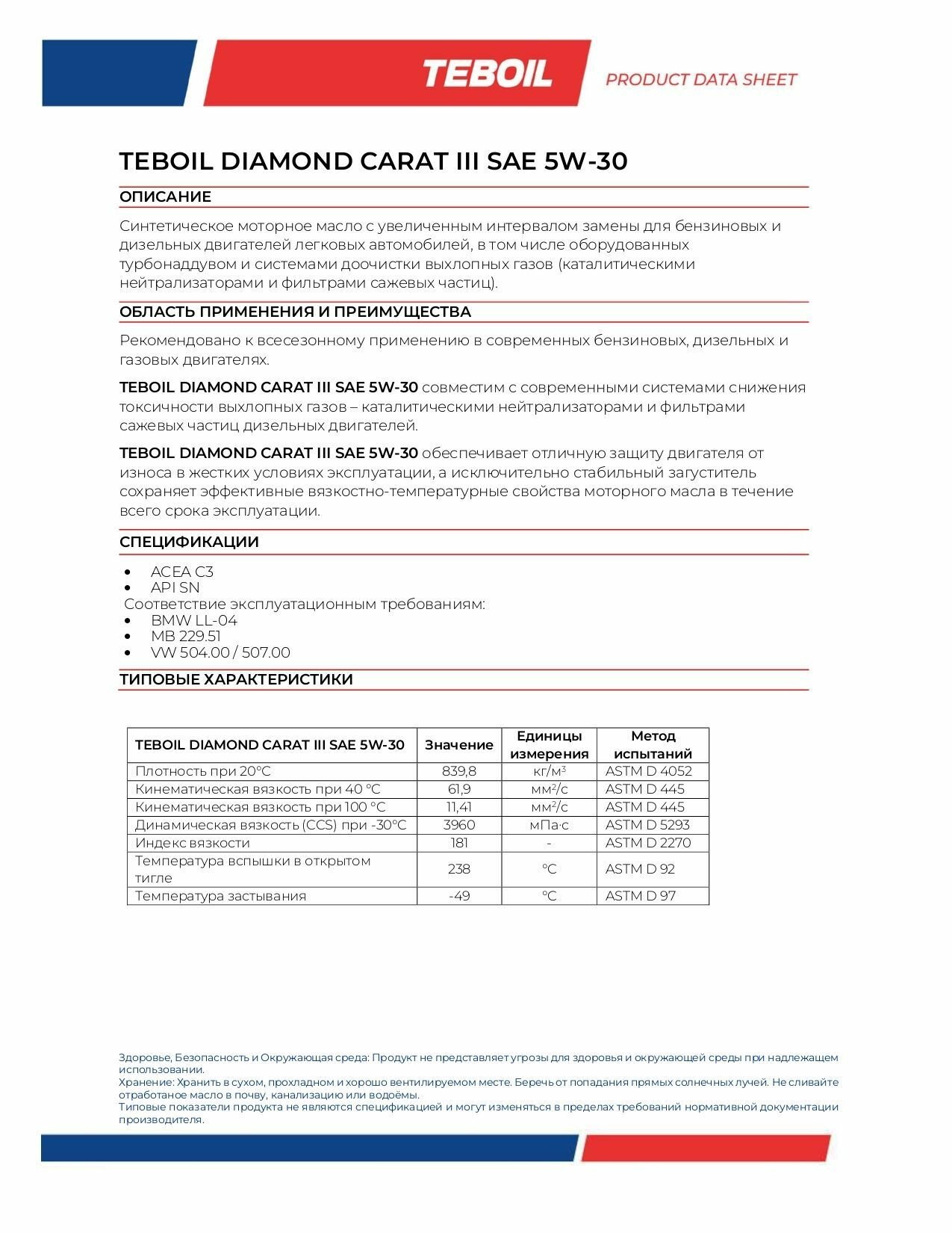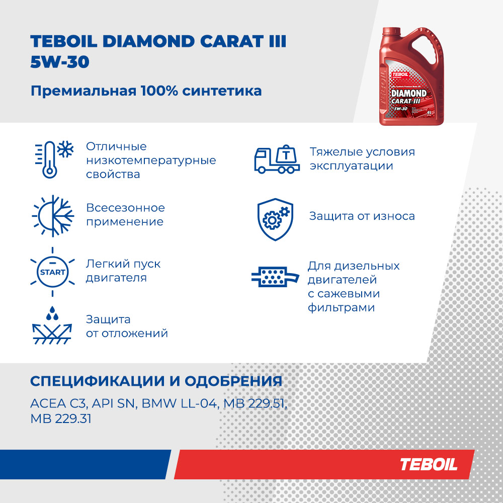 Teboil Teboil Diamond Carat Iii 5W-30 (4L) Масло Мот.! Синт Api Sn, Acea C3, Bmw Ll-04, Mb 229.51/229.31