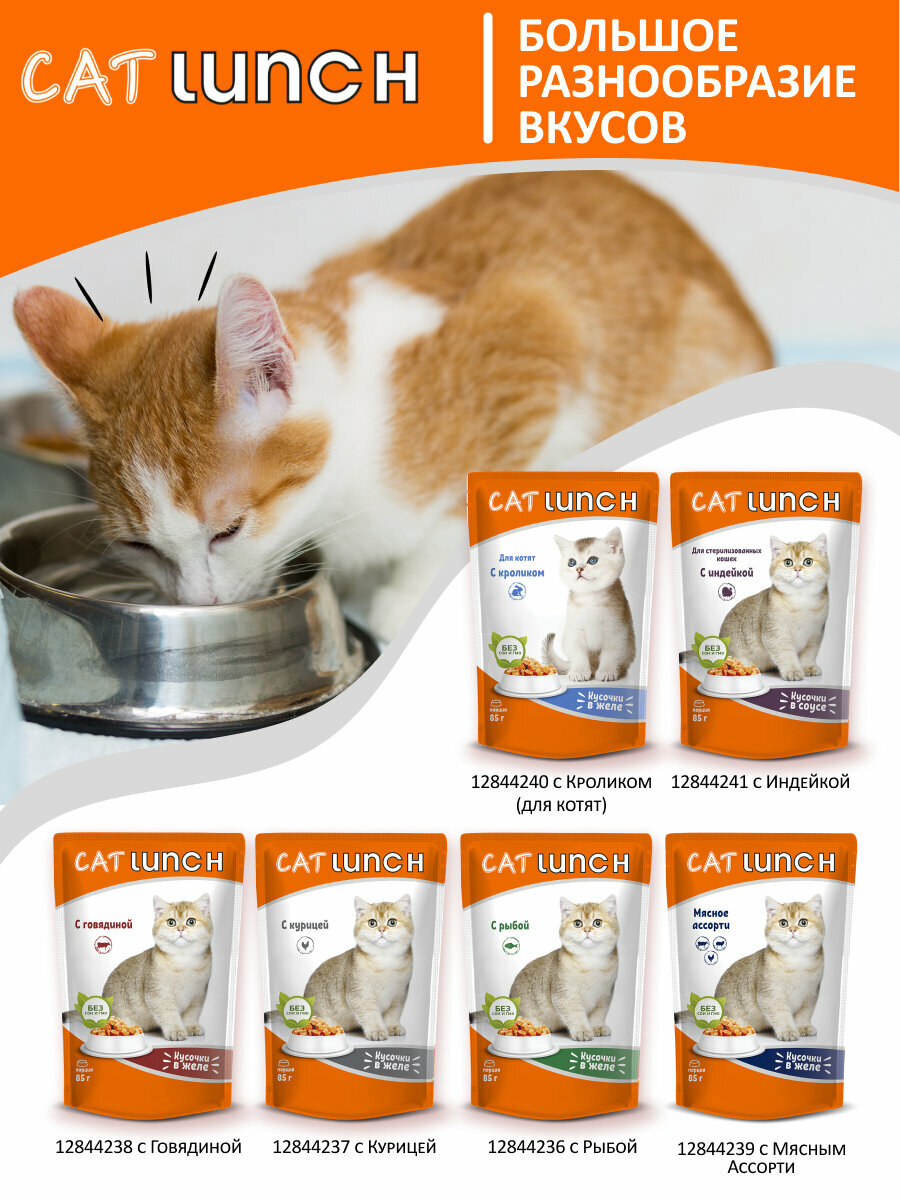 CAT LUNCH для взрослых кошек с курицей в желе (85 гр х 24 шт)