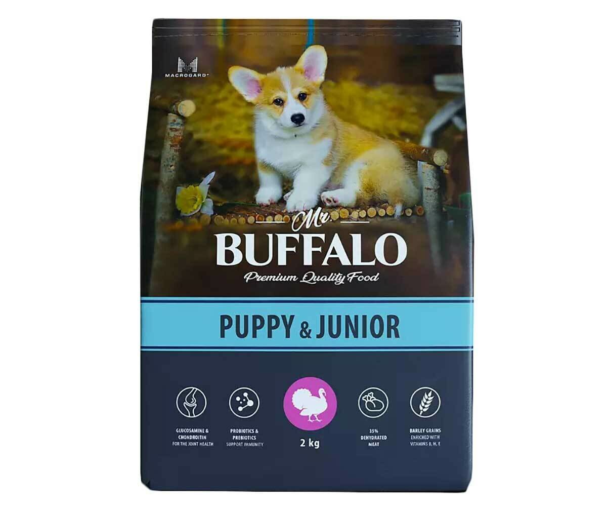 Mr.Buffalo Puppy & Junior полнорационный сухой корм для щенков и юниоров всех пород с индейкой - 2 кг