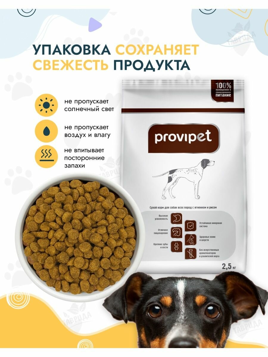 Сухой корм для собак с чувствительным пищеварением Provipet, ягненок с рисом, 2,5 кг