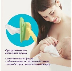 | Дополнительная информация | анатомичная форма нагубника; скошенный силиконовый сосок; не содержит бисфенол-А (BPA free); отверстия в нагубнике для циркуляции воздуха; кольцо для клипсы-держателя |