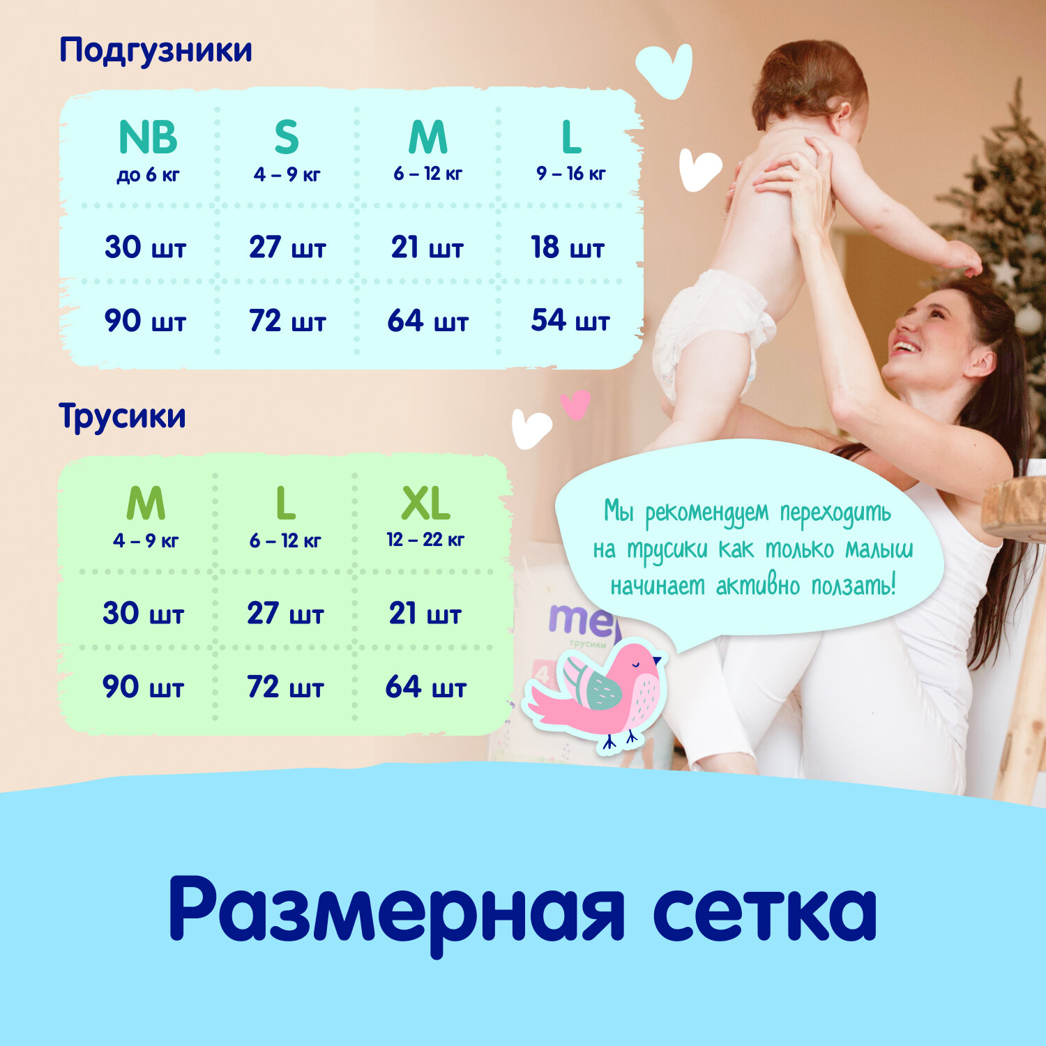 Подгузники Mepsi детские, 3 размер, M (6-11кг), 64 шт.