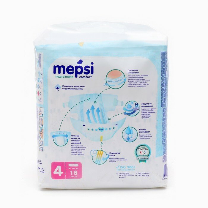 Подгузники Mepsi детские, 4 размер, L (9-16кг), 18 шт.