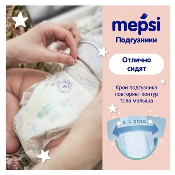 Подгузники Mepsi детские, 1 размер, NB (до 6кг), 30 шт.