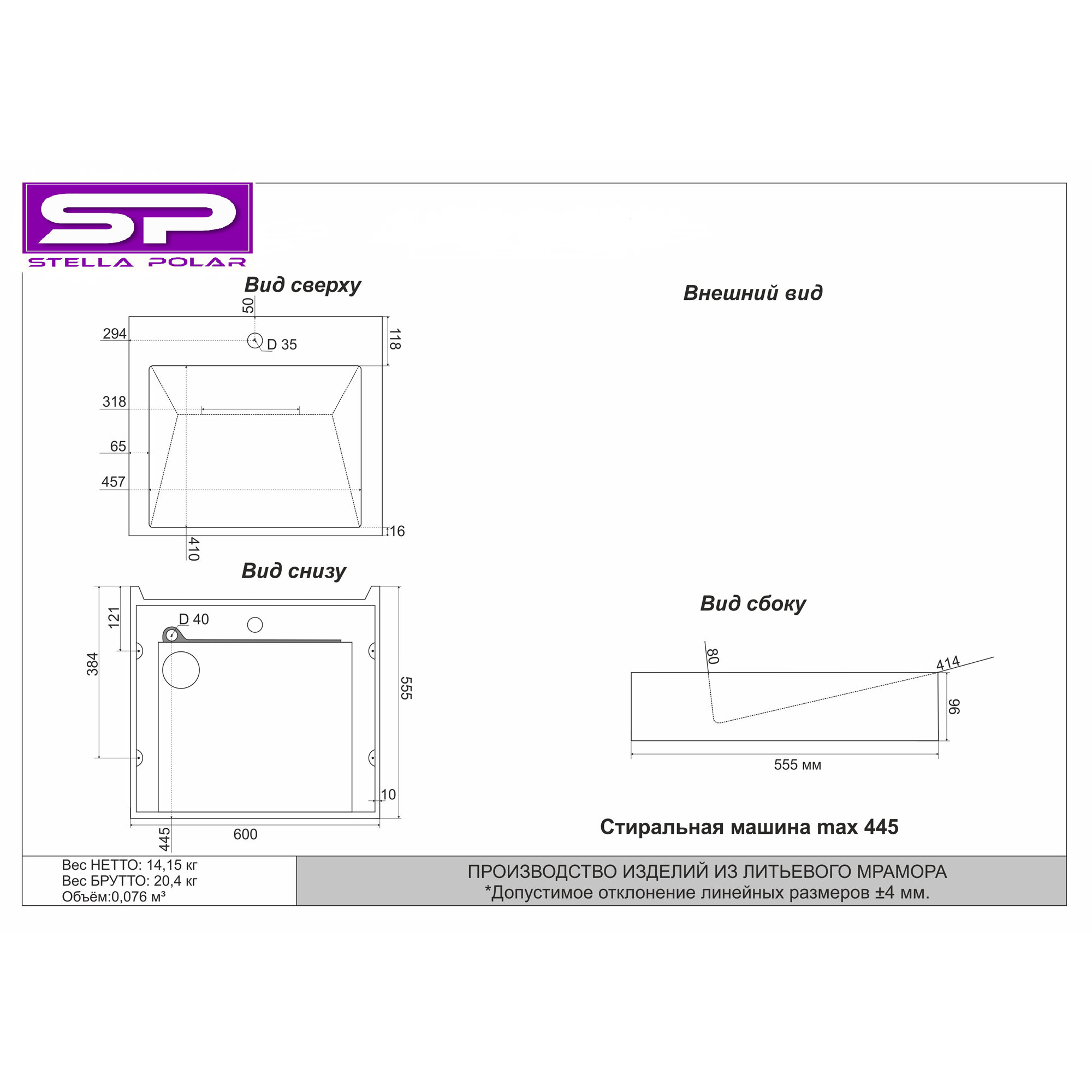 Раковина над стиральной машиной Stella Polar Берта 60х55 SP-00000238