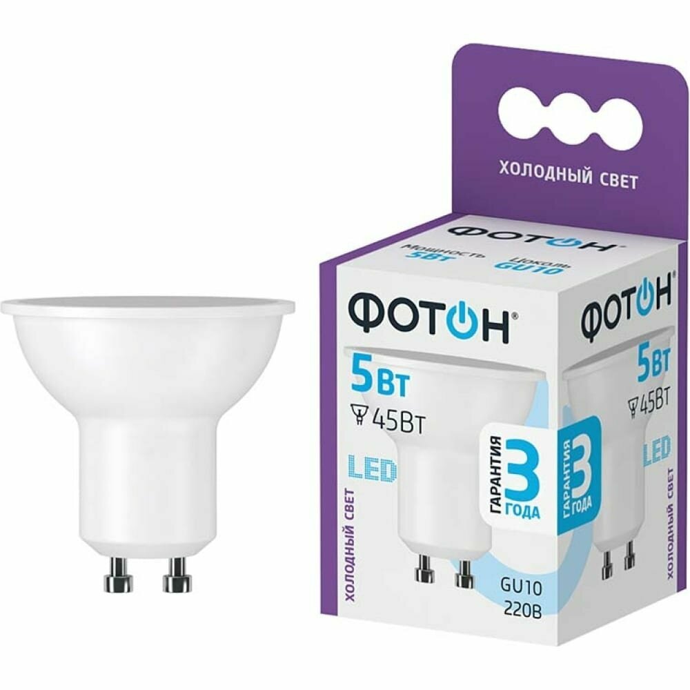 Фотон Лампа светодиодная LED MR16 5W GU10 6500K 23990 интересное: