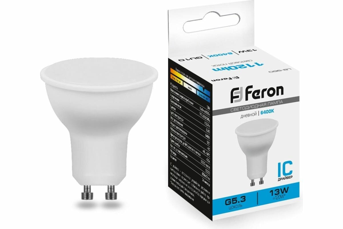 Лампа светодиодная Feron GU10 13W 6400K матовая LB-960 38193, цвет Белый/, материал /