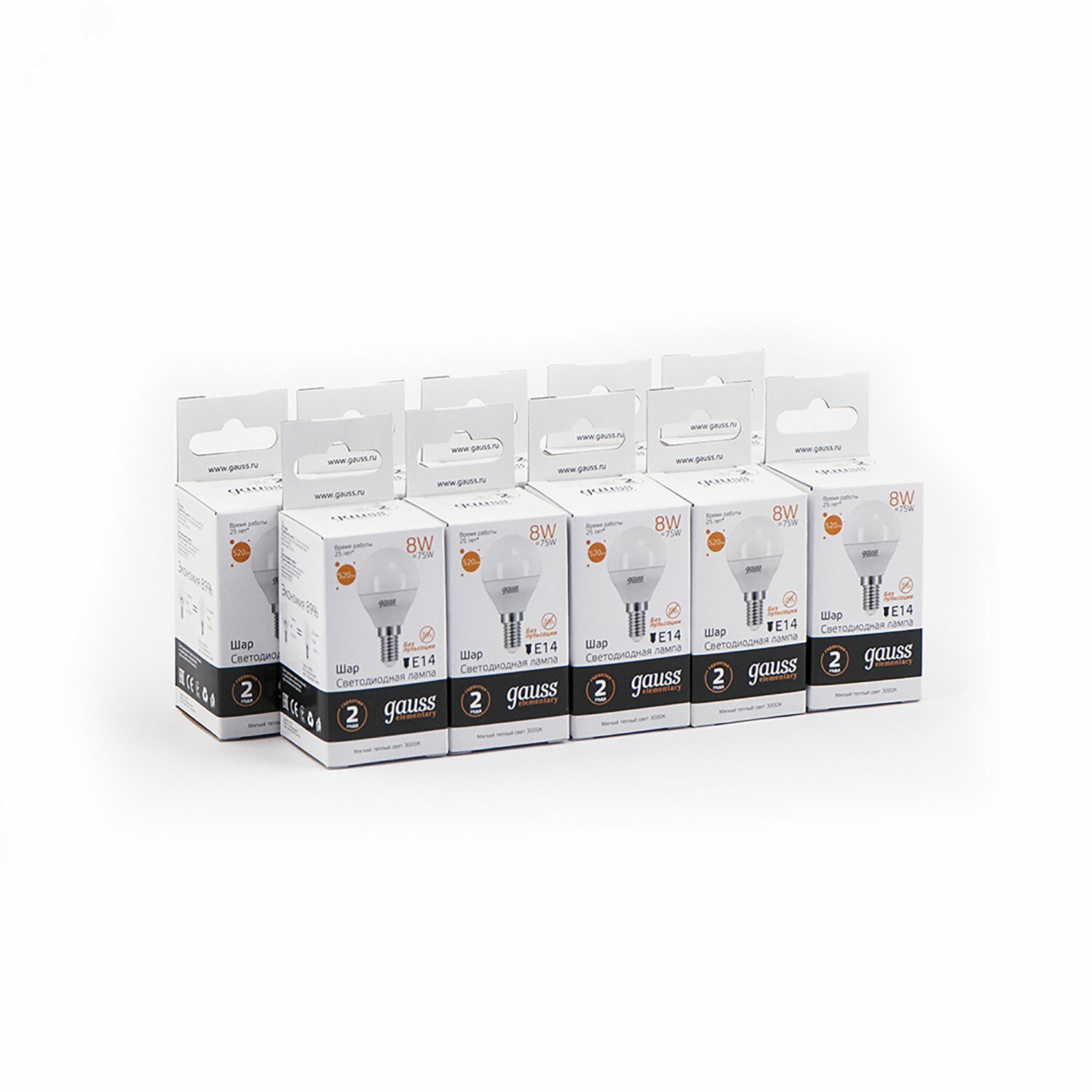 (5 ШТ)Лампа Gauss Elementary Шар 8W 520lm 3000K Е14 LED 1/10/100