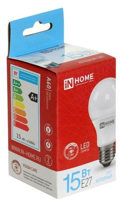 Лампа светодиодная IN HOME LED-A60-VC, E27, A60, 15 Вт, 6500 К