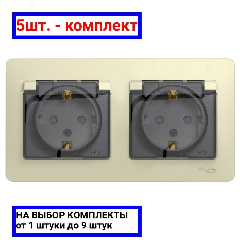 Розетка двойная с заземлением с защитными шторками влагозащищенная IP44 бежевая Schneider Electric Glossa (комплект из 2 шт)