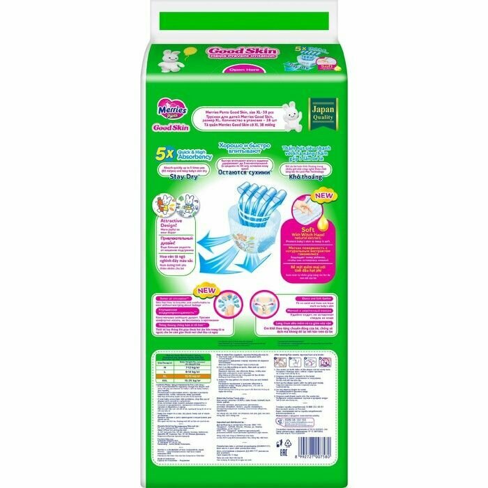 Трусики-подгузники Merries Good Skin, для детей, размер XL 12-19 кг, 38 шт (7580) интересное: