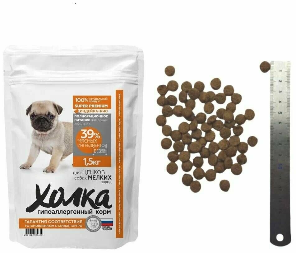Корм холка гипоаллергенный премиум класса для щенков собак мелких пород с индейкой и рисом, 1.5 кг