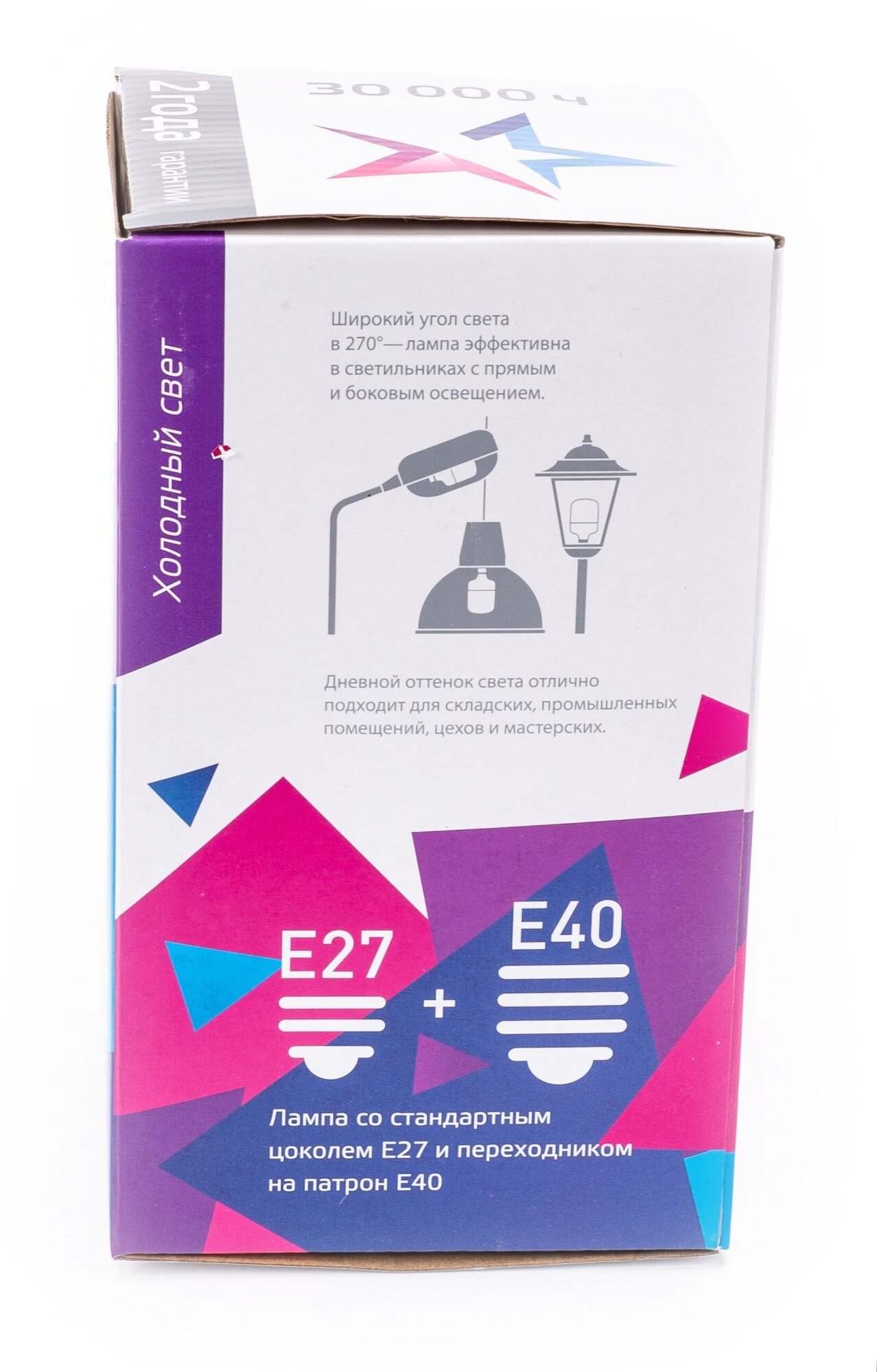 | Дополнительная информация | класс энергоэффективности - класс A, угол светового пучка - 270, переходник с E27 на E40 в комплекте |