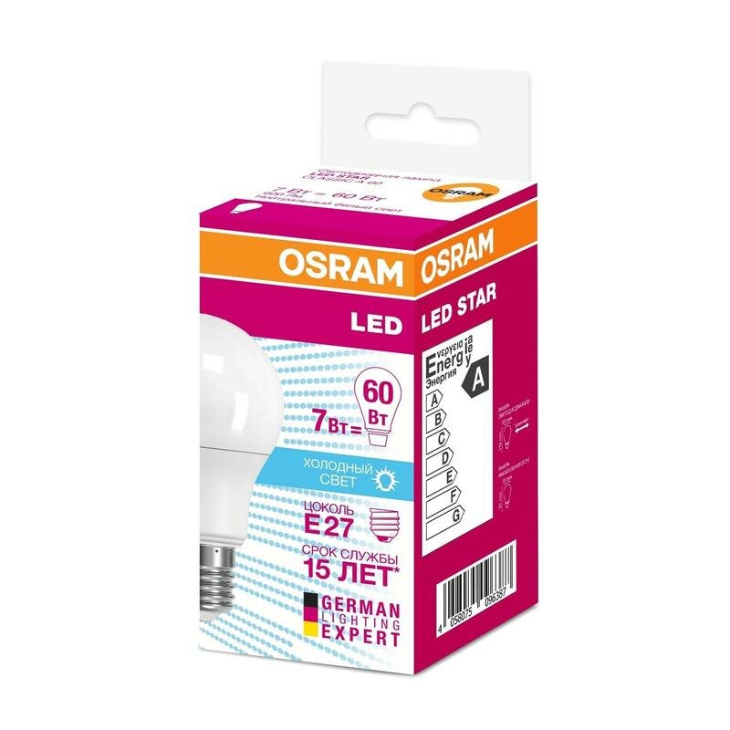 Лампочка светодиодная OSRAM LED Star, 600лм, 7Вт, 4000К (нейтральный белый свет), цоколь E27