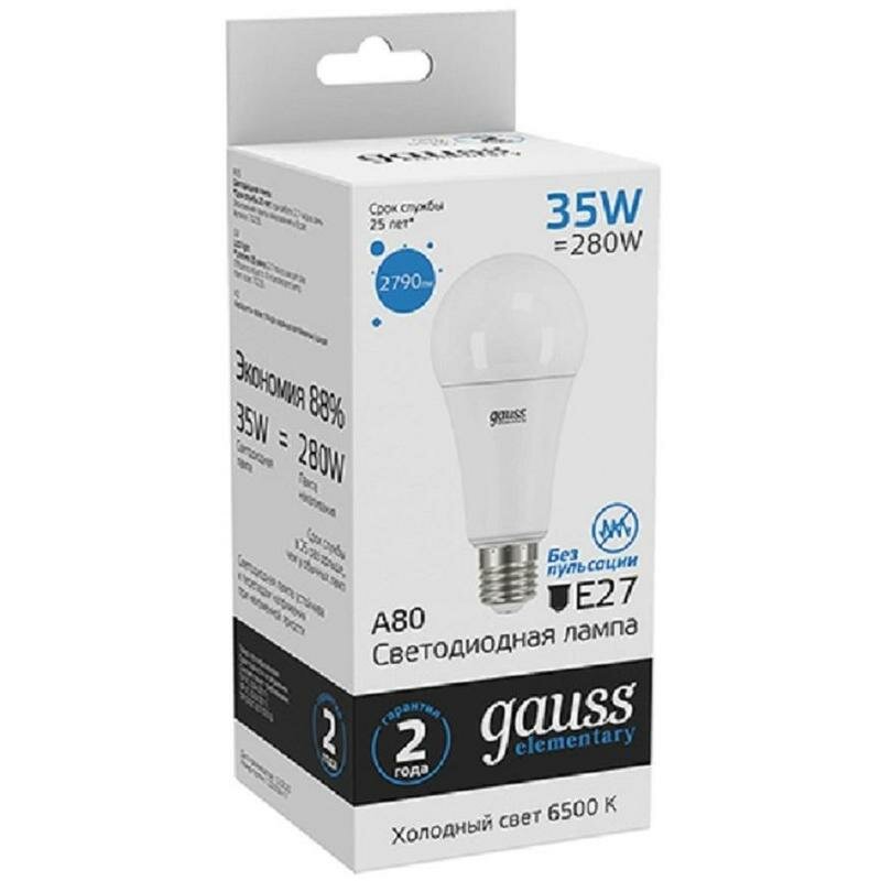 Светодиодная лампа Gauss Elementary A80 35W 2790lm 6500K E27 LED 1/10/50