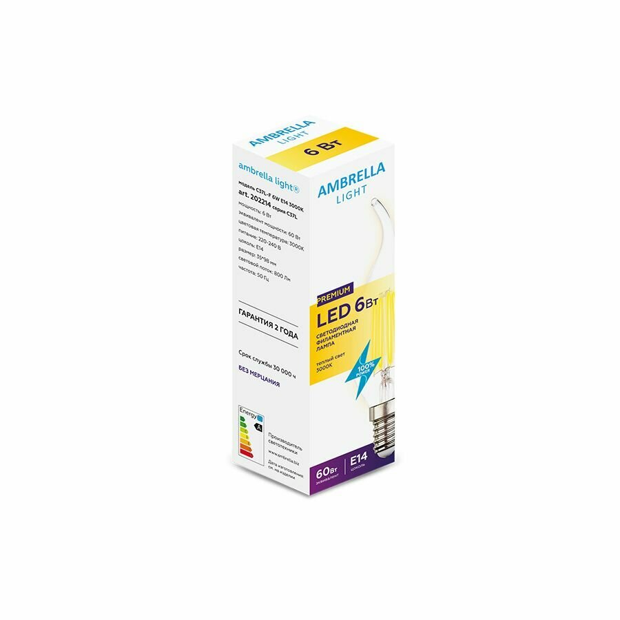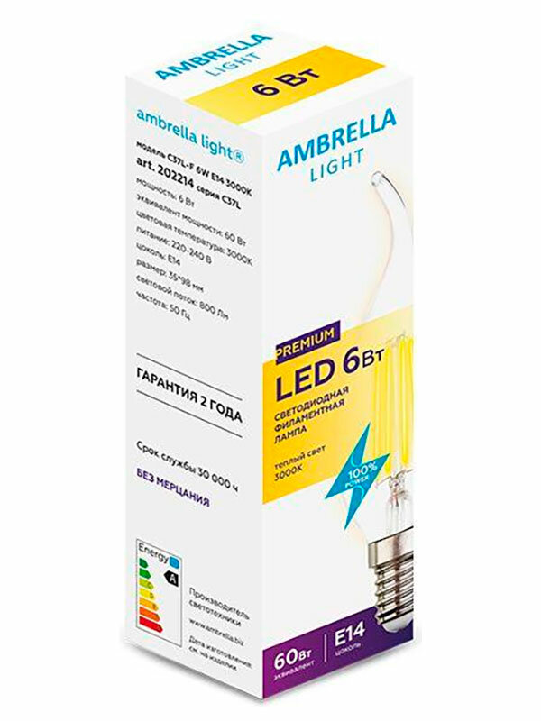 Ниже Вы можете прочитать отзывы на Лампа светодиодная филаментная Ambrella light E14 6W 3000K прозрачная 202214, ознакомится с подробными характеристиками, посмотреть интересные обзоры и фотографии на Лампа светодиодная филаментная Ambrella light E14 6W 3000K прозрачная 202214.