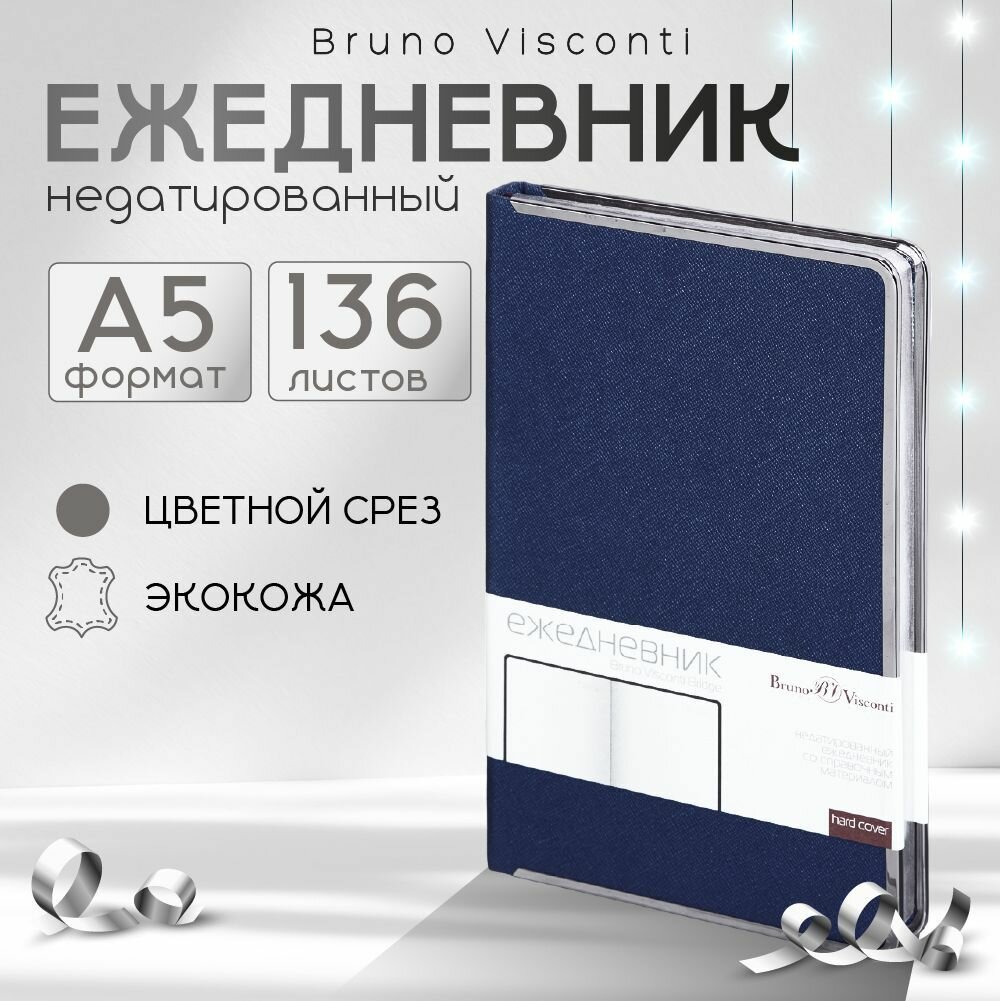 BrunoVisconti Ежедневник недатированный А5, 136 листов BRIDGE, обложка искусственная кожа, серебряный срез, серебро