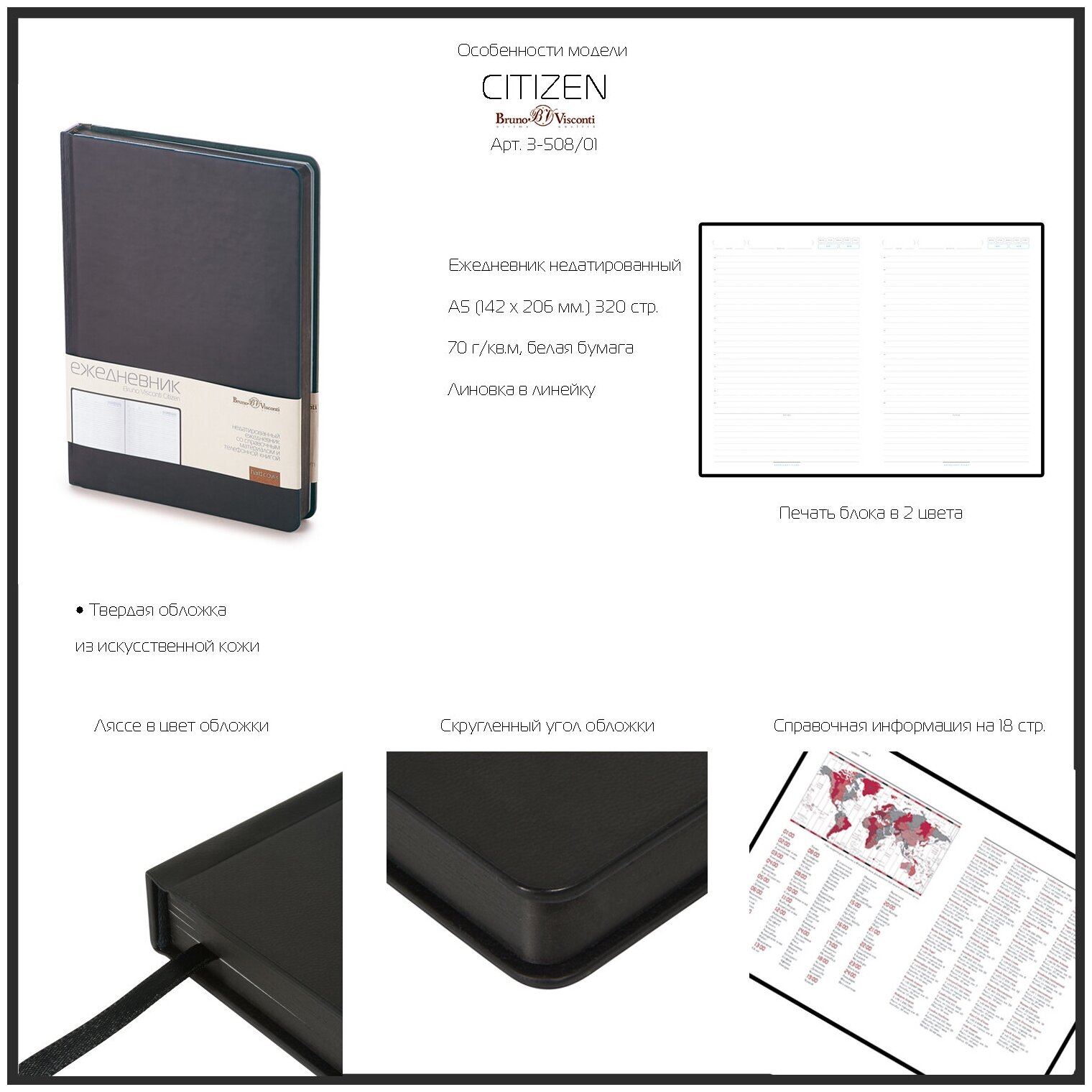 Ежедневник А5+ 160л недатированный Citizen бордовый иск.кожа альт 3-508/04 интересное: