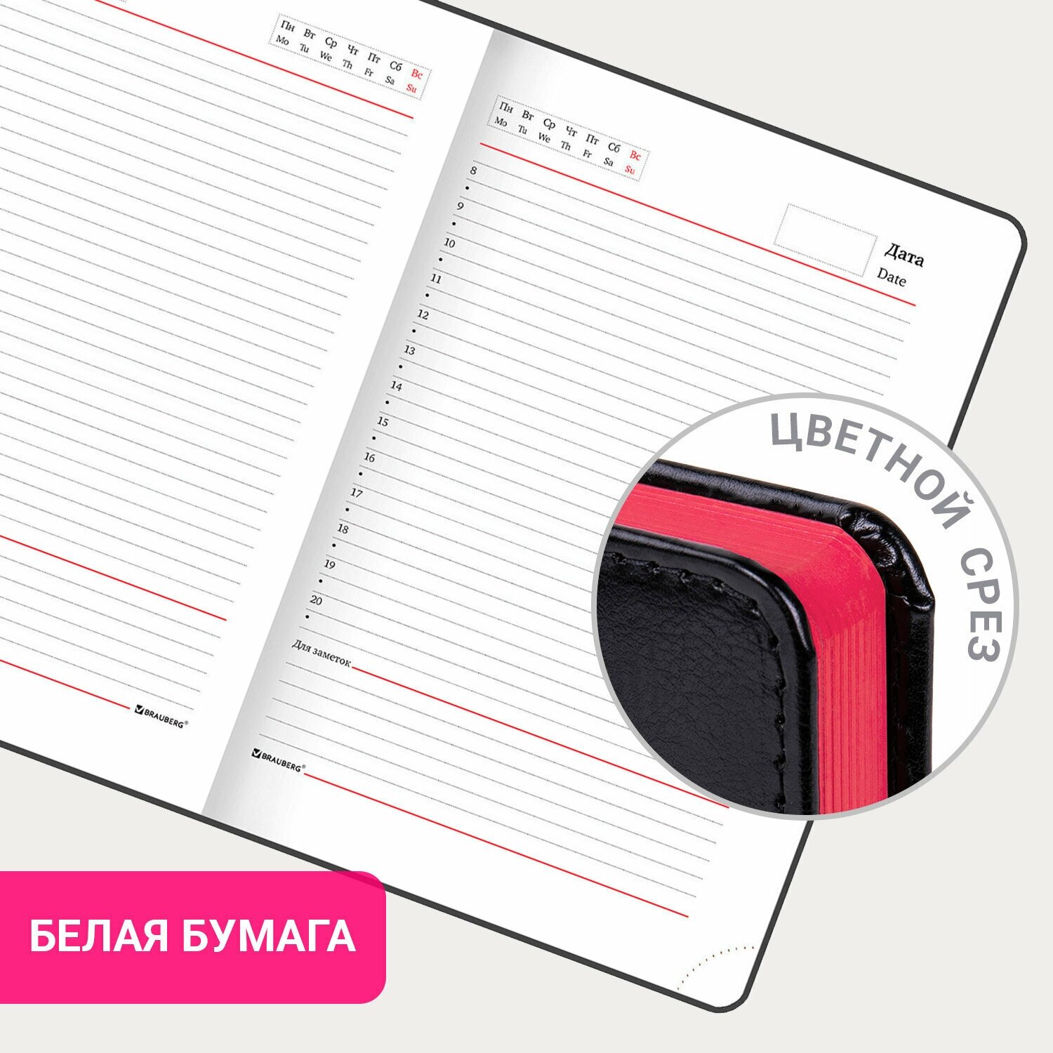 Ежедневник недатированный А5 (138x213 мм) BRAUBERG "Rainbow", под кожу, 136 л., черный/красный, 113498