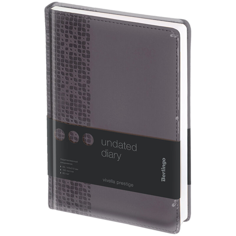 Купить Ежедневник Berlingo Vivella Prestige недатированный на 2022-2023 год, искусственная кожа, А5, 160 листов, серый, цвет бумаги тонированный