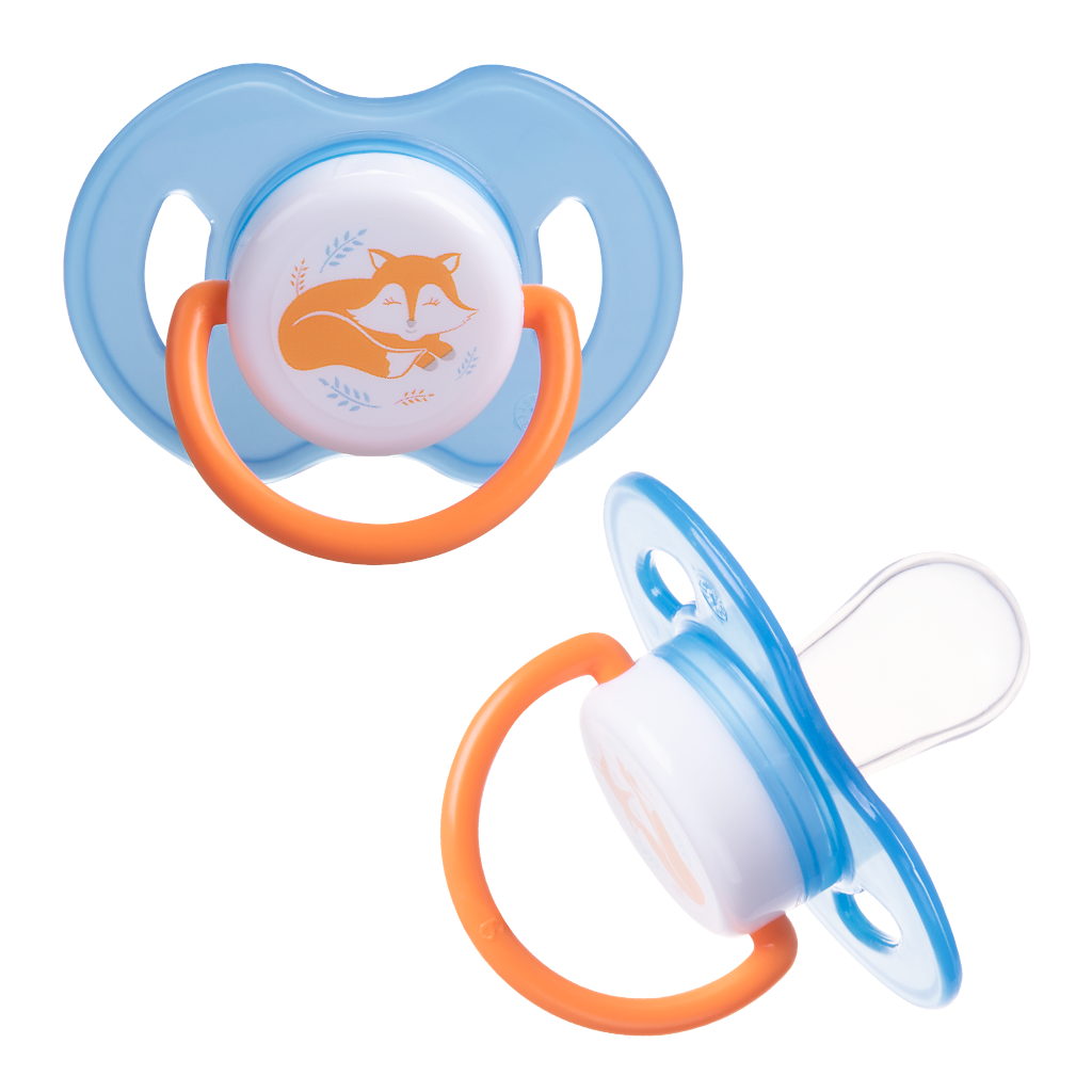 Пустышка силиконовая каплевидная Курносики Лисенок 0+, голубой/оранжевый интересное: