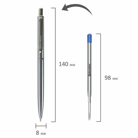 Ручка бизнес-класса шариковая Brauberg Larghetto, синяя, корпус серебристый с хромированными деталями, линия письма 0,5 мм (143474)