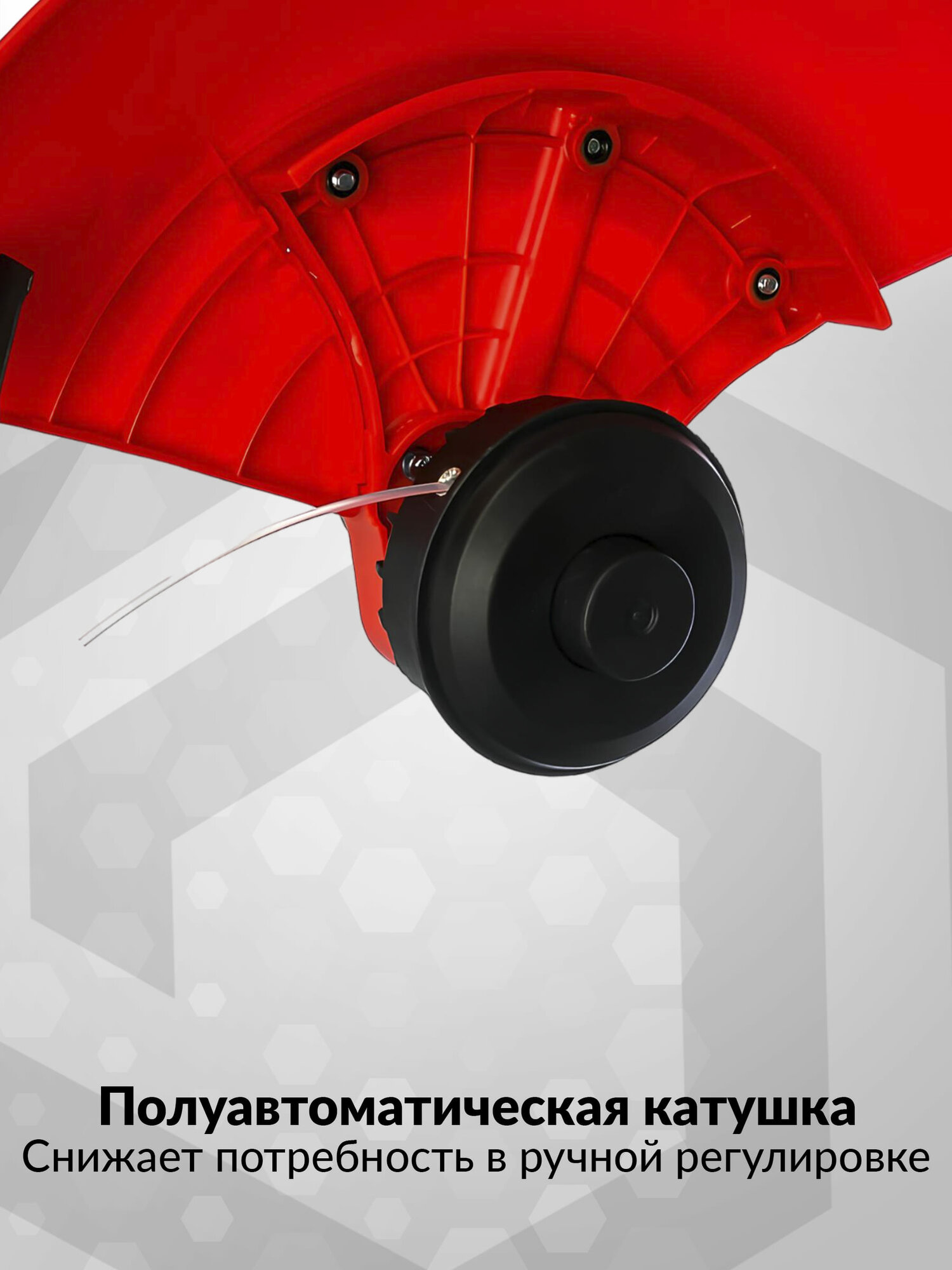 | Особенности | ширина скашивания с помощью ножа - 23 см; полуавтоматическая катушка; разборная штанга; функция плавного пуска; питание от сети переменного тока напряжением 230 В, частотой 50 Гц; ударопрочный корпус; защита от случайного включения |